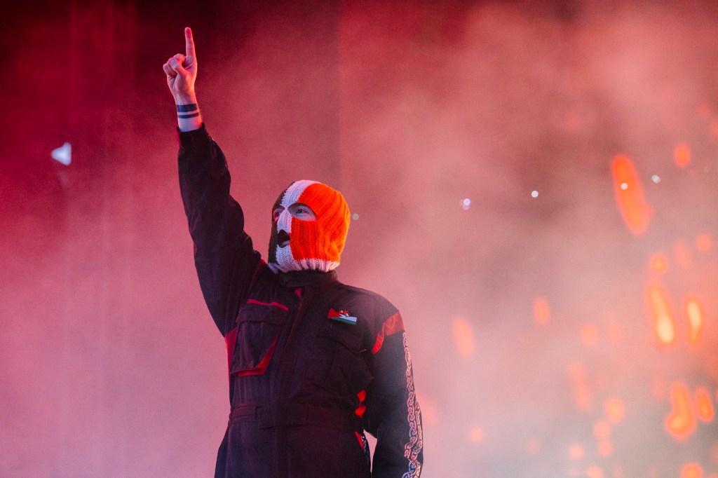 ‘Will youse lot write me letters when I’m in jail?’ joked Mo Chara, before bounding into a high-energy verse of Irish on the Wide Awake main stage. If you’ve been at all sentient this past month or three, you would know the fuss being kicked up over Kneecap. The Met Police have charged Mo Chara, one of the three members of the Irish rap group, with terror offences; the night before the festival, police entered Kneecap’s gig at the 100 Club; and an hour before their headline set at Wide Awake, it was reported that the Brixton council was being pressured to stop their appearance on stage altogether. Yet, there they stood before a crowd of 20,000, grinning in front of a sonic wall of ‘Free Palestine’ chants.